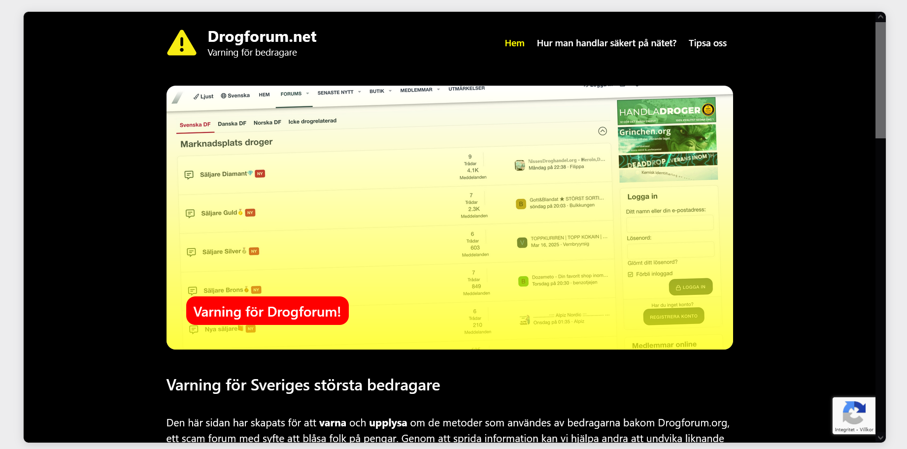 Den här sidan har skapats för att varna och upplysa om de metoder som användes av bedragarna bakom Drogforum.org, ett scam forum med syfte att blåsa folk på pengar. Genom att sprida information kan vi hjälpa andra att undvika liknande bluffar i framtiden.